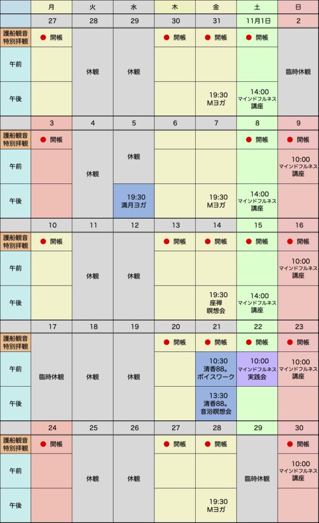 ※葬儀、マインドフルネス講座等、個人情報を含む時間は、ライブ配信の映像または音声を止めております。